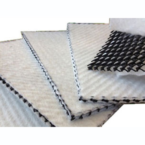 復合排水網是一種新型的排水土工材料。以高密度聚乙烯(HDPE)為原料,經特殊的擠出成型工藝加工而成,具有三層特殊結構。中間筋條剛性大,縱向排列,形成排水通道,上下交叉排列的筋條形成支撐防止土工布嵌入排水通道,即使在很高的荷載下也能保持很高的排水性能。雙面粘接滲水土工布復合使用,具有“反濾--排水--透氣--保護”綜合性能,是目前最理想的排水材料。